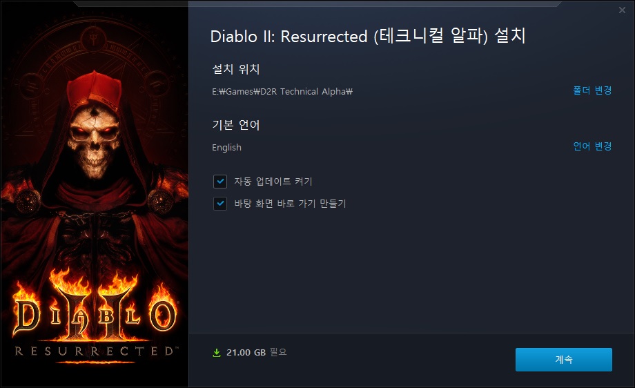 배틀넷 런쳐로 가서 설치를 해보니... 오우..; 무려 21기가나 된다. 1,2막만 된다고 하지만 용량이 상당하다.