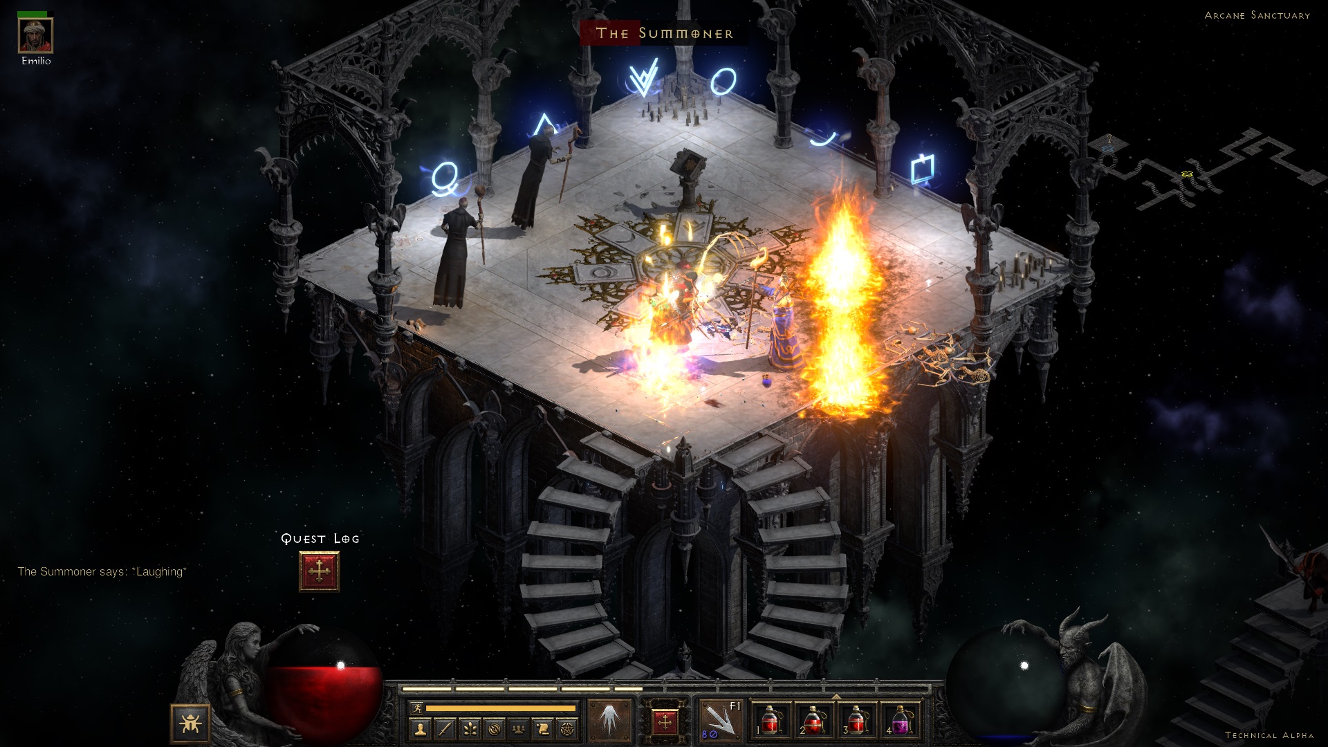궁전을 지나 아케인 생츄어리로 간다. 이제 서머너를 잡아야 할 때! 멀리서 웃으면서 글래셜 스파이크, 파이어 월을 구사하는데, 파이어 월이 상당히 아프다. 파이어 레지가 낮다면 순삭 당할지도... 특히나 소서리스는 피통이 낮으니...