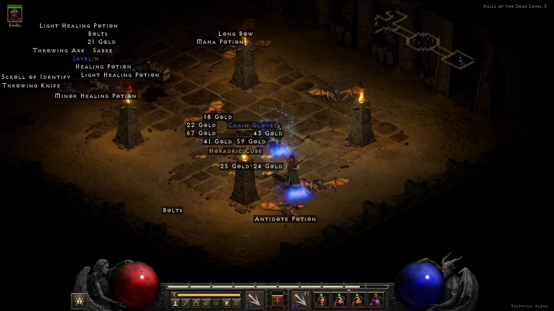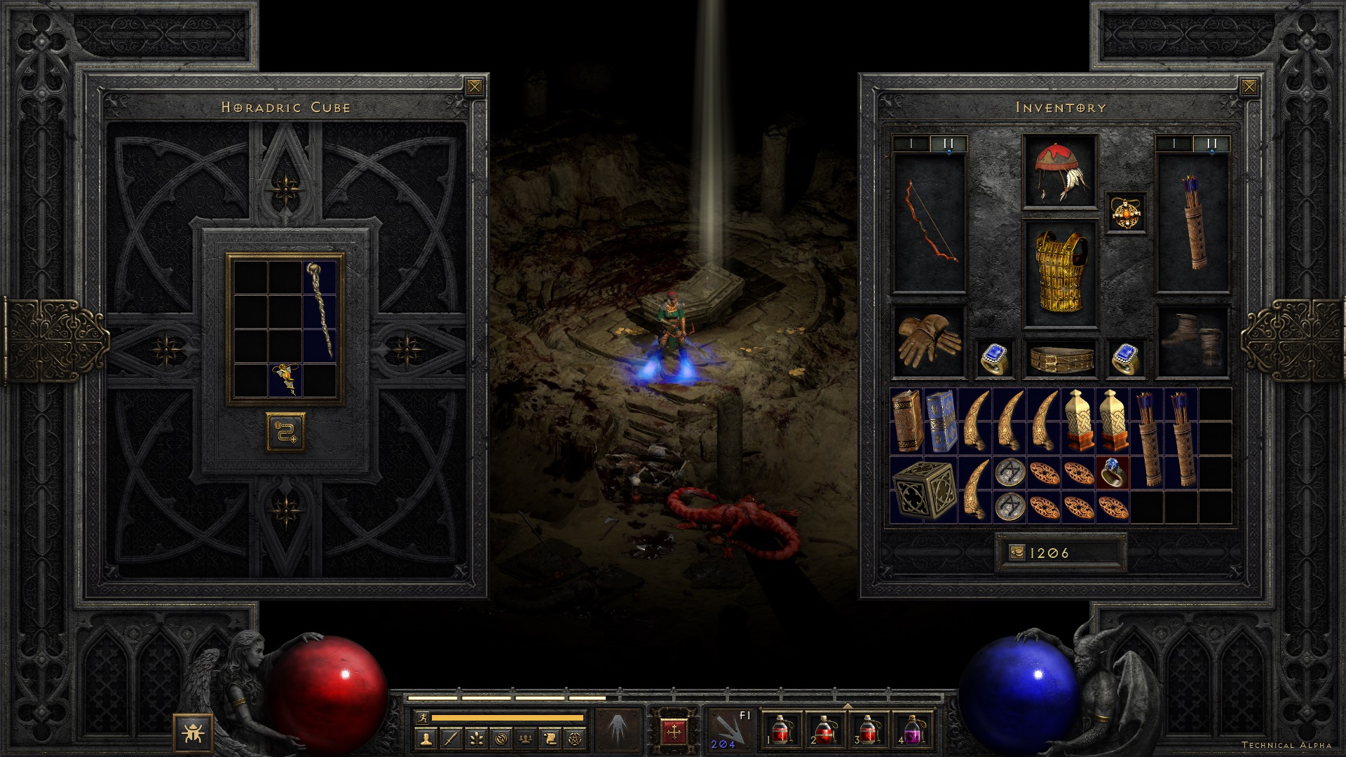 엑트 2를 넘어가기 위한 필수 템인 호라드릭 큐브. 이제 각종 레시피를 이용한 변환이 가능하다. 그동안 모아둔 쪼가리 보석들을 모두 상위로 업글 하도록 하자. 슬슬, 활을 바꿀때가 된 것 같다. 이제 몬스터가 잘 죽질 않는다.