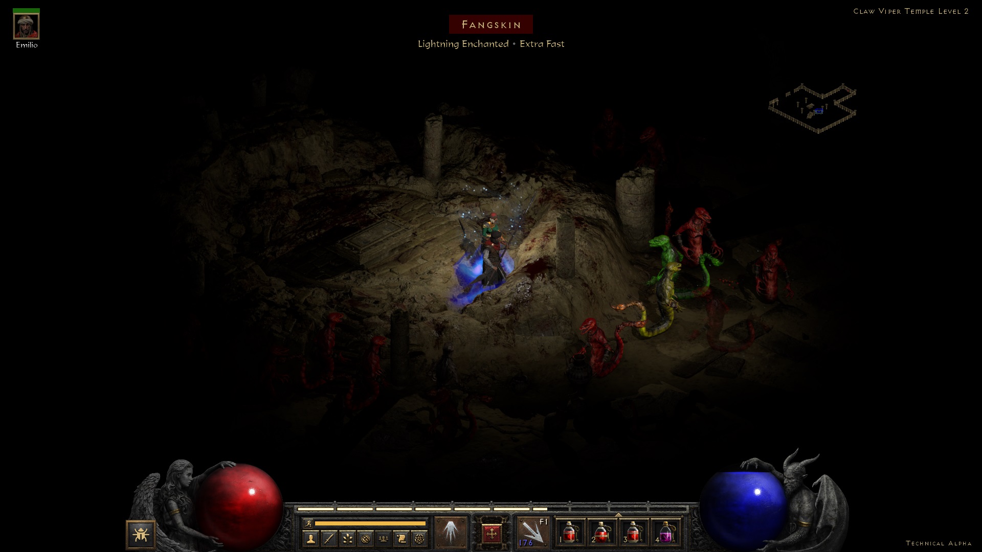 클로 바이퍼 사원의 경우 아뮬렛이 있는 곳으로 이동하면 다리가 없는 뱀들은 올라오질 못한다. 여기서 편안하게 처리하자. 하지만 팡 스킨이 맞았을때 나오는 챠지드 볼트는 상당히 아프니 조심하자.