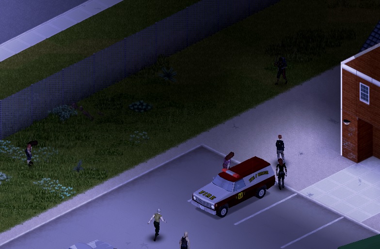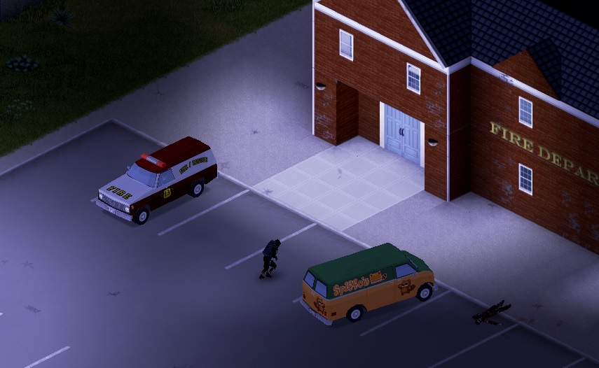 차에서 한숨 자고 나니 껌껌한 어둠이 내리깔린 저녁.. 이때가 저녁 12시? 정도였던것 같다. 출발하기전에 주변을 탐문해보니 소방서 입구쪽에 좀비가 포진해 있었다.