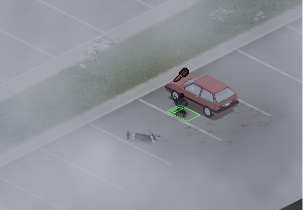 파밍을 끝내고 나오니 이미 안개는 걷힌 상태. 주변을 어슬렁거리던 좀비들이 있어서 일단 제거했다. 이때 피로도가 상당히 높아서 더이상 파밍은 힘들것 같아서 차량 주변에 있는 소규모 집단 좀비들도 모조리 잡아 족쳤다.