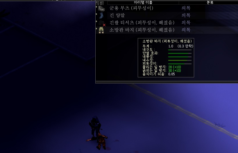 소방관 옷들은 아마 겨울을 위한 필수 아이템이지 않을까 싶다. 하지만 줍줍하는것마다 내구도가.....