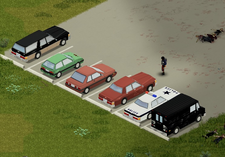 총 11대를 주차 시켜놨다. 아직 한대를 덜 가져왔는데 좀비들이 너무 많아서 돌파하기가 쉽지가 않다.