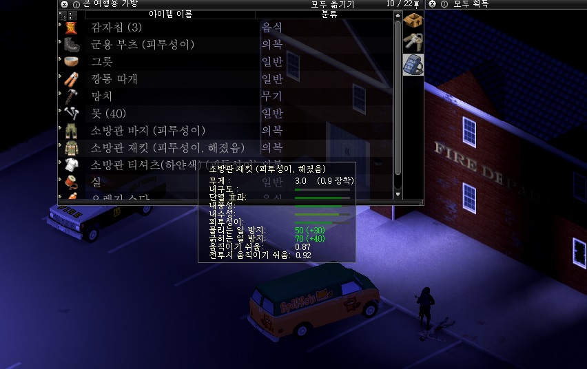 다행히 소방서 내부 몇몇 좀비들의 옷은 내구도가 괜찮았다. 최대한 챙겨가자.