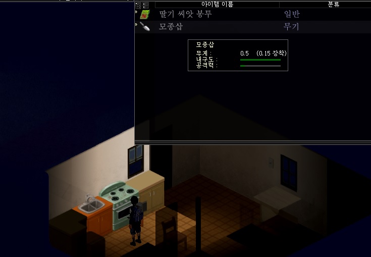 역시나 좀비가 슬금슬금 올라온다. 다행히 근처에 좀비가 얼마 없었던 모양이다. 몇마리 때려잡고 나니 더이상 나오진 않았다. 중요한 '그 물건'이 농가에서도 자주 나온다 해서 찾아봤지만 없었다. 피로도도 상당히 높다 보니 여기서 하룻밤 자고 가야겠다.