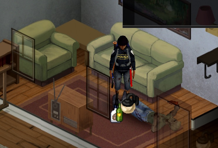 특히 2번째 집은 농장도 있어서 정착하기에 좋다. 안에 들어가니 좀비는 없고 대신 술병과 시체가 있다.