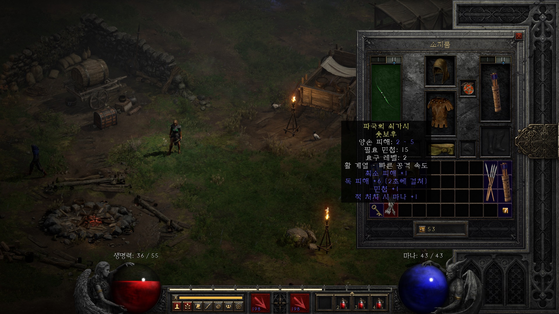 원소술사던 뭐가 됐던, 첫 캐릭의 맨땅 헤딩은 항상 활을 들고 싸우기에, 악의 소굴을 정화(?)하고 먹은 이 활은 백섭 대상자(?)가 아니었던지라 건질 수 있었다. 당분간은 이 활로 버텨야겠다.