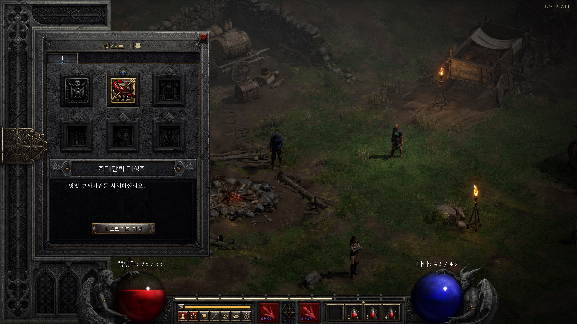 악의 소굴을 정화하고 룰루랄라 핏빛 큰까마귀(블러드 레이븐)을 처치하고 양쪽 묘지를 털고 아이템을 정리하던 중에 '거래를 기다린다'라는 말이 나오고 그대로 넋 다운... 내 넋도 날라갔다.