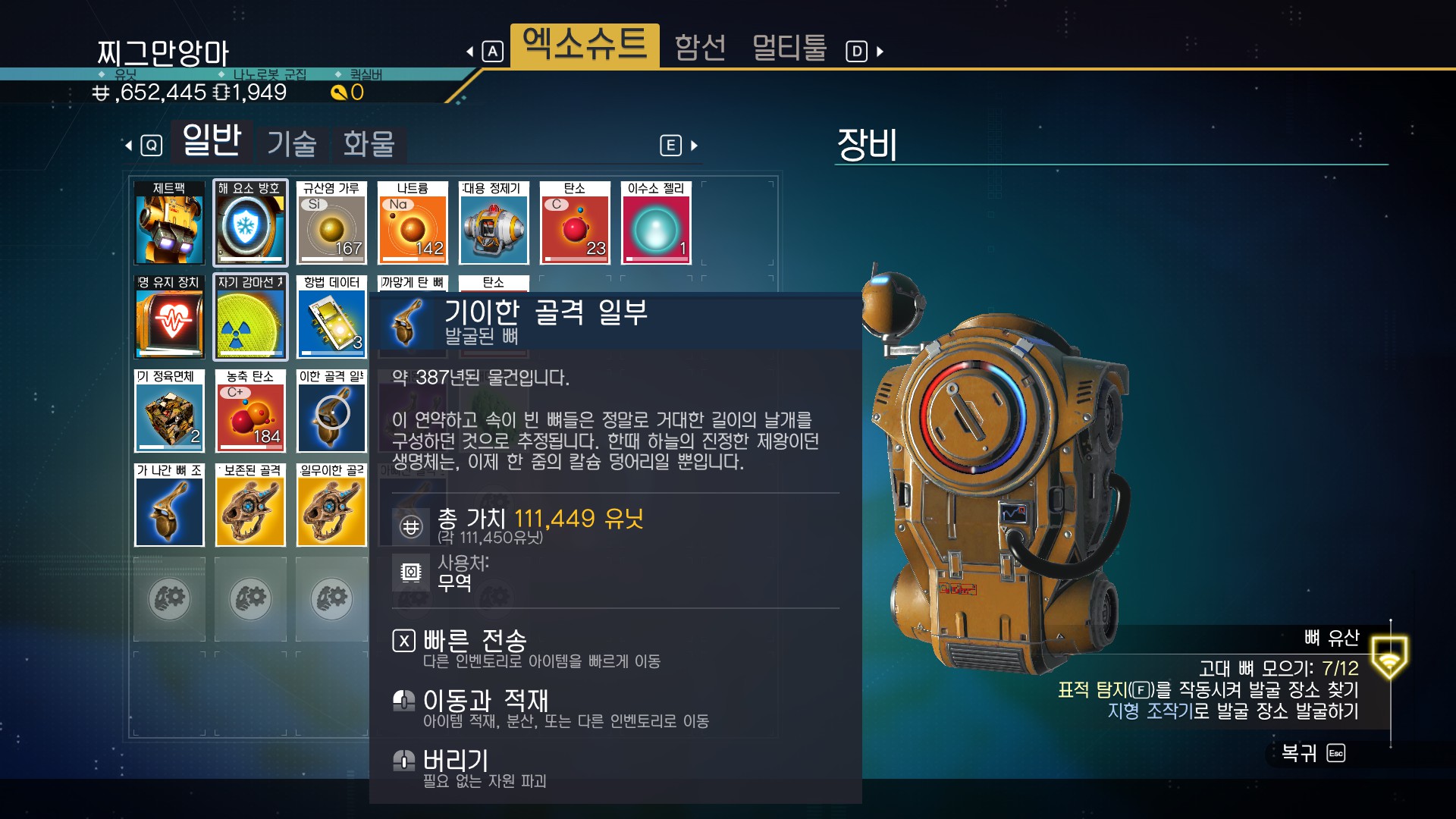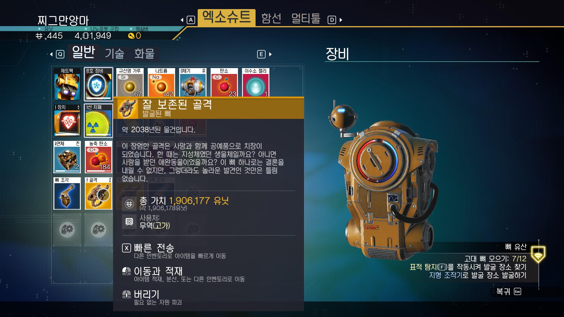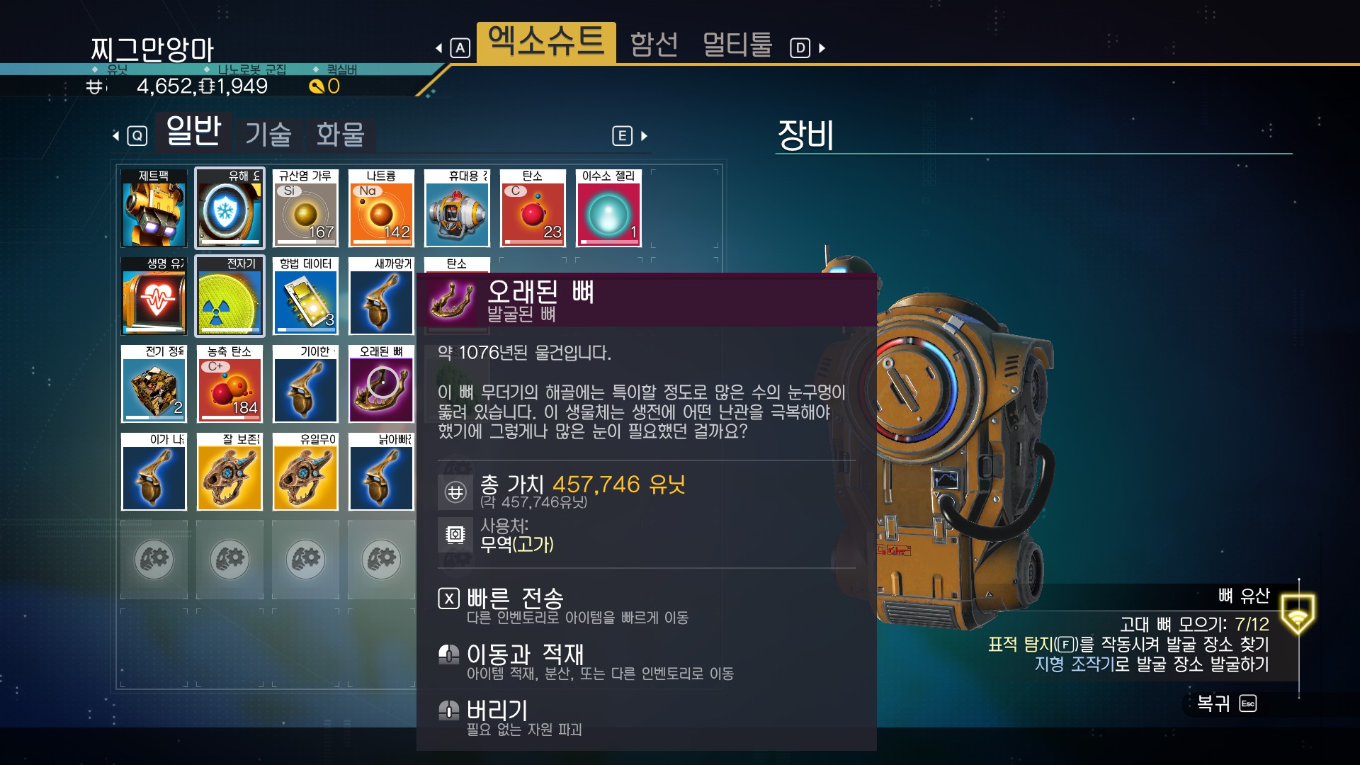 물론 퀘스트가 아니더라도 '고대 뼈'가 있는 행성이라면 그냥 가서 발굴해도 된다. 하지만 고대 뼈 행성을 그냥 찾기란 힘들다. 그러니 넥서스에 가서 퀘스트로 고대 뼈 찾는걸 받도록 하자. 그럼 고대 뼈가 있는 행성으로 바로 날라간다.