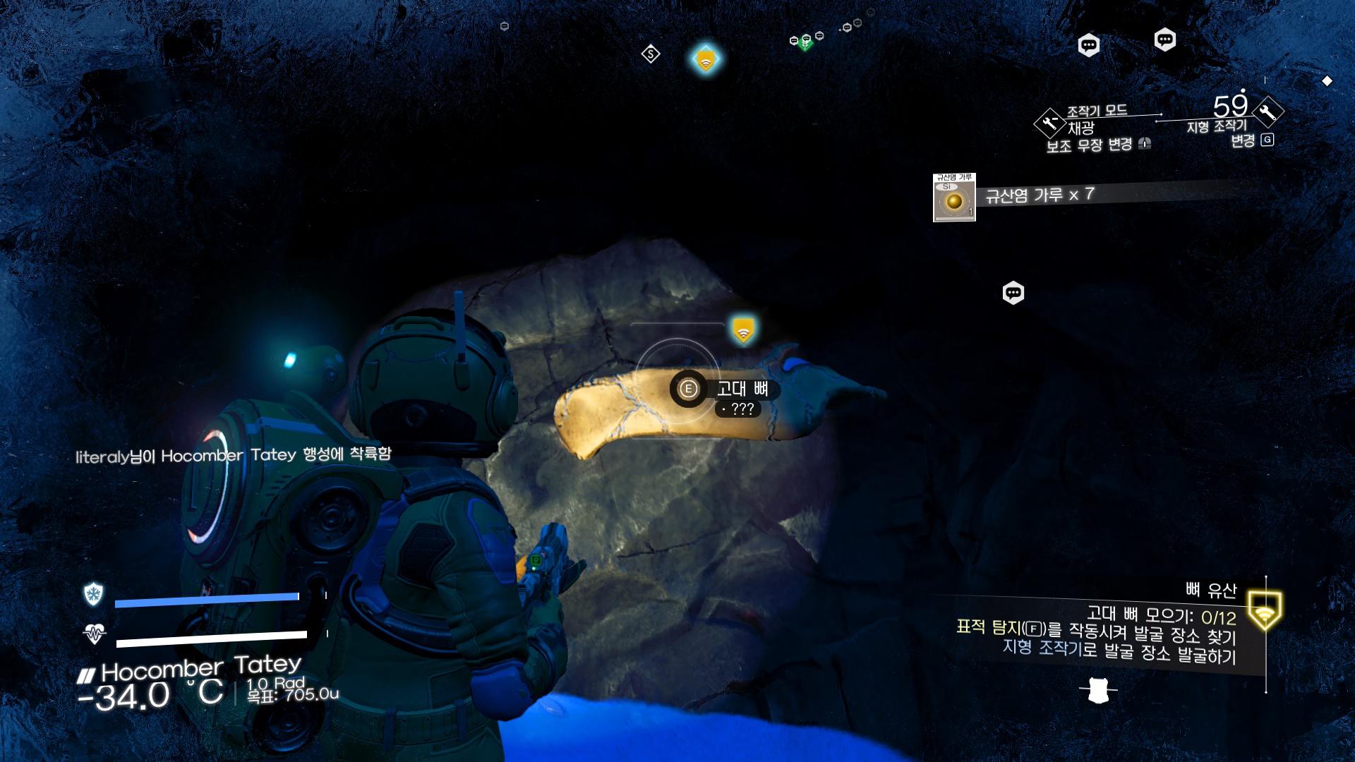 노 맨즈 스카이의 넥서스에 받는 퀘스트 중에 고대뼈 발굴하는게 있다.