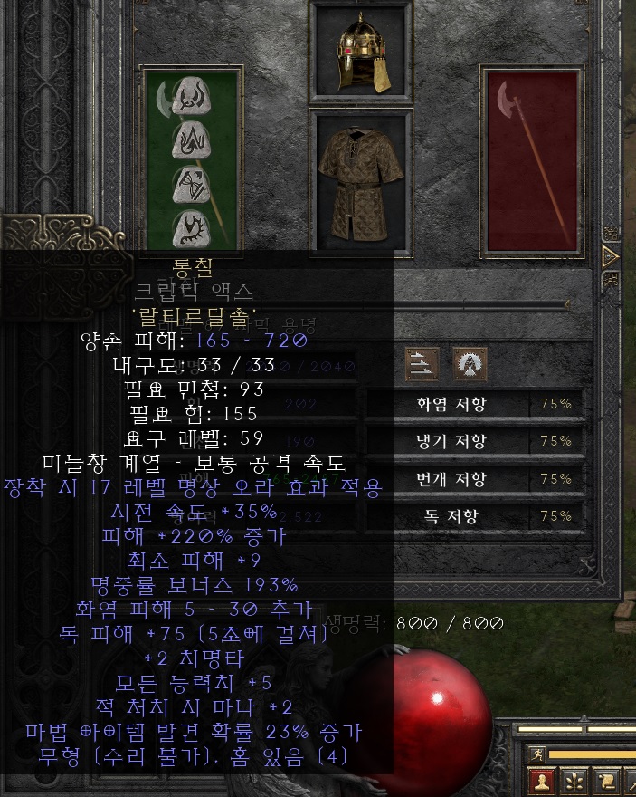 (참고로 무기 소켓 호라드릭 큐브 공식은 랄+앰+최상급 자수정)