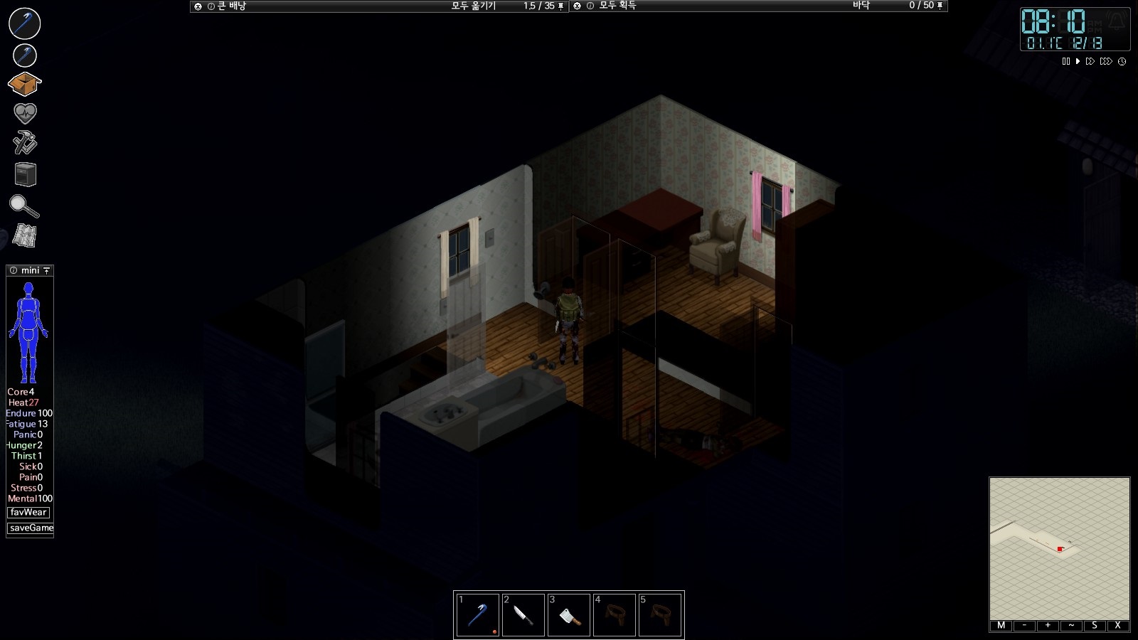 여긴 차고랑 바로 붙어 있지만 문이 있어 따로 들어가야 하지만, 미리 저장공간이 4개, 2단 선반이 1개 마련되어 있다. 위쪽으로 어느정도 공간이 있으니 확장공사를 해도 나쁘진 않을듯 싶다. 차고 주차를 즐긴다면 파밍 후 바로 창고로 통하게 길을 내는 것도 좋을 듯 싶다.