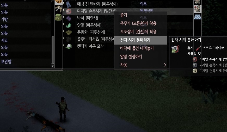 좀비들은 제법 높은 확률로 디지털 손목시계를 가지고 있다. 이걸 분해하면 레벨을 올릴 수 있다. 그리고 이어폰을 가지고 있는 애들도 있는데, 이것 역시 분해하면 경험치를 준다. 디지털 손목시계보단 구경하기 힘들다.