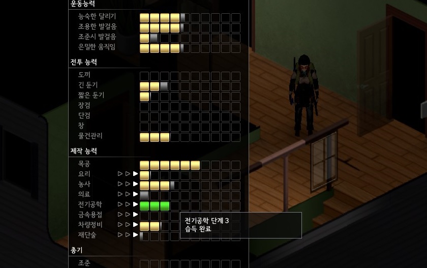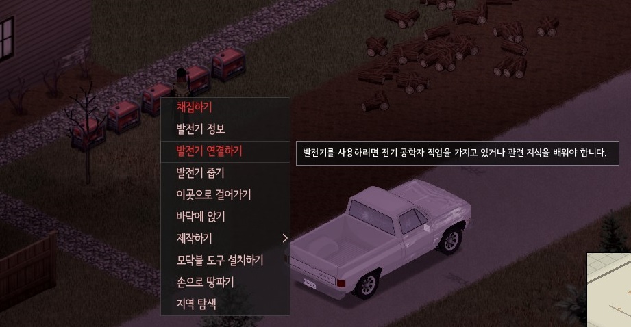 좀비에게서 뺏은 시계와 이어폰, 그리고 빈집털이로 결국 전기공학 3단계를 달성했다. 이제 발전기를 연결만 하면..