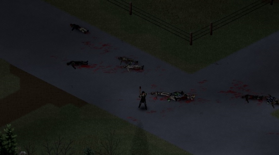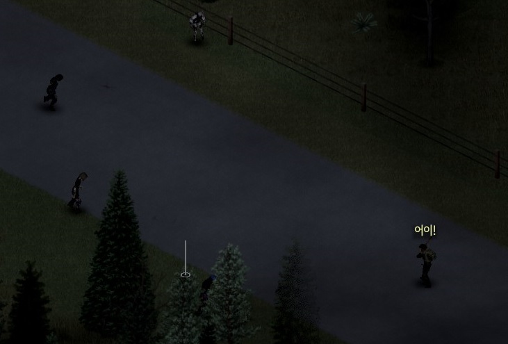 여기 숲이 있는 길에서는 조심해야 한다. 좀비들이 숲 곳곳에 숨어 있다. 길가에서 싸움 하면서 좀비가 죽을시에 그 소리를 듣고, 혹은 눈에 띄어서 슬금슬금 숲을 헤치며 나오다보니 좀 늦게 나타난다. 길에 있는 좀비와 싸우다보면 어느세 뒤를 잡힐지도 모를 일이다. 그래서, 차라리 저렇게 외쳐서 불러내는게 오히려 낫다. 불러내고 뒤로 냅다 뛰면, 일단 숲 밖으로 나오는데, 소리만 듣고 나온지라 눈에 안보이면 그 자리에 멈춰 서 있게 된다. 그때 하나둘 유인해서 처리하면된다.