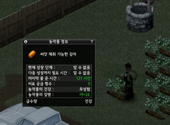 그 와중에 드디어, 감자의 첫번째 수확이 시작되었다. 다 수확하고 나니 감자가 대략 90여개..;; 이제 뭐 배불리 먹고 달려도 무리가 없겠다. 어차피 정량대로, 즉 배고픔 수치만 채운다 해도 썩기 전까진 저거 다 못 먹을거다. 그러니 마음껏 달리면서 배터지게 먹어야겠다. 그러면 몸무게 유지가 어느정도 되지 않을까 싶다.