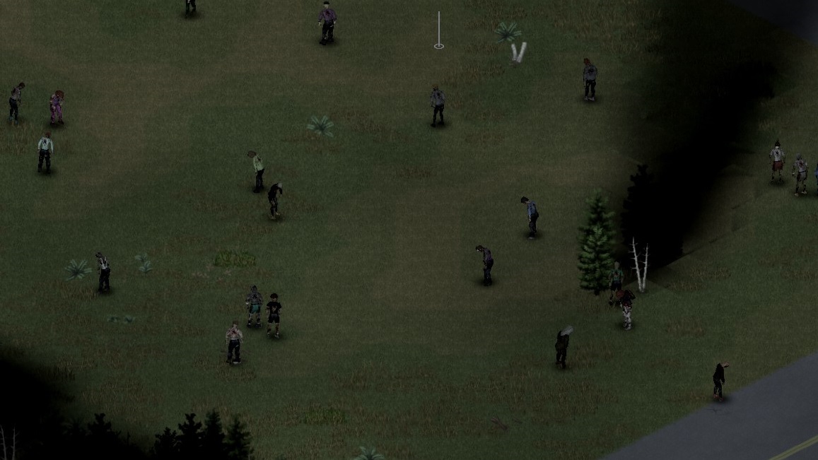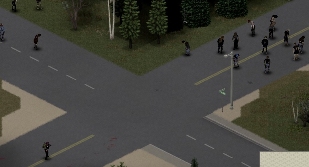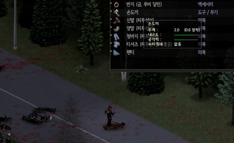 7일차, 좀 더 과감한 플레이로(보통 좀비 3~4마리 선에서 싸웠으나 6~7마리정도 불러서 잡기시작) 드디어 여기까지 진입했다. 하지만...; 좀비가 많이, 아주 넓게 산개해 있었다. 오른쪽 도로에도 이정도로 산개해 있었다.