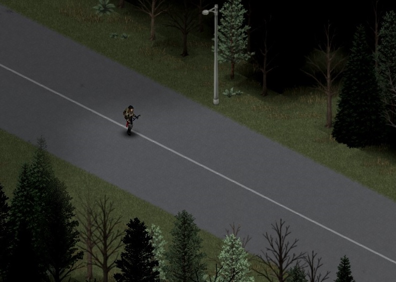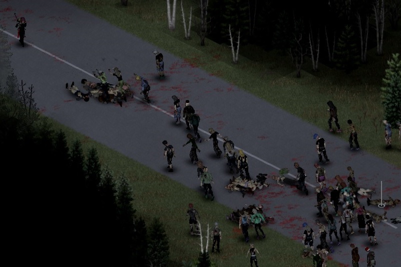 도로에 좀비가 없는것처럼 보이지만 숲에 다 숨어 있다. 외치기를 하니 이렇게 하나둘 기어나오기 시작한다. 그렇다보니 숲길에서의 진행이 상당이 더디다. 조금 이동하고 외치고, 나오면 처리하고를 반복해야 하기 때문이다. 이렇게 안 하면 어느순간 둘러쌓여 뒤를 잡히고, 그 뒤에는....