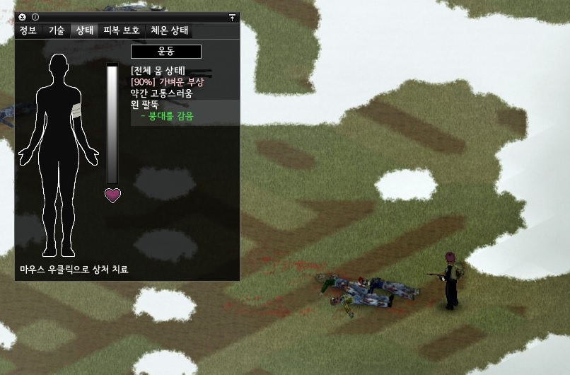 이번 상처는 참 오래가네.. 이틀째 되는라에도 통증 수치가 2(모드).. 즉, 완치가 안 됐단 소리다. 좀비화는 피했으니 그걸로 만족해야 되는건가.. 그래서 이왕 쉬는거 하루 더 쉬기로 했다. (좀비와 싸우는 날보다 쉬는 날이 더 많았던 원정)
