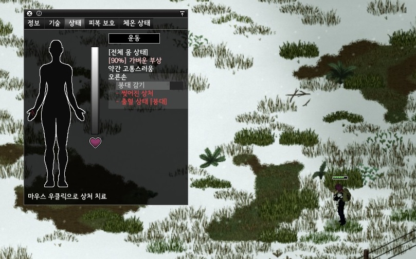 안개가 사라지는 와중이었으나...; 결국 당했다. 이 상처도 통증이 어마어마하다..; 데미지가 제대로 안 들어간다. 때릴때마다 통증 무들이 계속 흔들흔들.. 진통제까지 먹어가면서 싸웠으나 치료가 거의 되질 않다보니 이대로 안되겠다 싶어서 결국 후퇴했다.