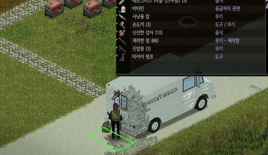 이 차로 길가에 있는 폐차들을 견인하다보니 트렁크가 좀 망가져서 적재 용량이 156->146까지 떨어졌었다. 좌절하고 있는데, 혹시 수리는 뭘로 하나 봤더니.. 강력 접착 테이프로 가능했다. 음? 이게 뭐야..;;; 그래서 수리를 두번 하니 적재 용량이 179까지 늘어났다. 그래서 이렇게 왕창 만들어서 실었다. 그리고 다시 좀비소탕..;
