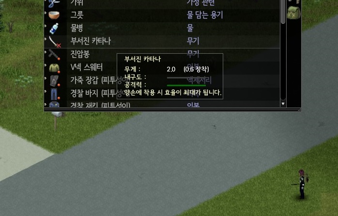 집 앞마당에도 가느 좀비들이 3~4마리 무리를 지어 여기저기 보였다. 뭐 이 정도 숫자야 금방이지. 전투시간이 길어지고 때려야 할 대상이 많다보니 쇠지렛대로 싸우기엔 체력이 너무 달린다. 그래서 진압봉으로 싸워보니 그나마 좀 쾌적하다. 이참에 짧은 둔기 좀 올려놔야겠다. 소규모 전투라면 진압봉도 나름 괜찮았다.