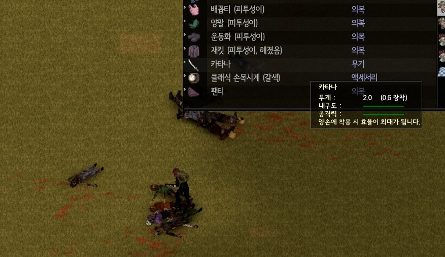 아.. 버리기조차 너무 아깝다..; 그래도 뭐 미친듯이 좀비들을 잡아댔으니 그걸로 만족해야지. 그래도 카타나 덕분에 집앞까지 뚫을 수 있었다.