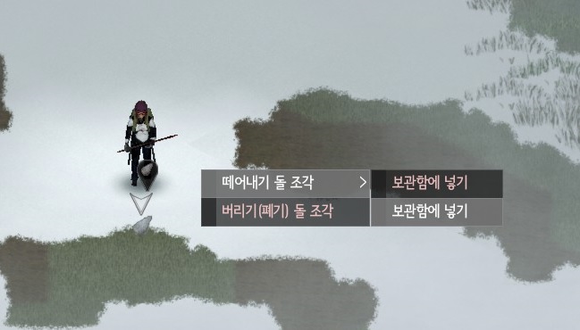 주변을 채집하니 의외로 돌조각이 잘 나왔다. 하지만 통나무가 좀 뜸하게 나오지만, 그래도 오전에만 나무창 20여개 정도는 더 조달 할 수 있었다.