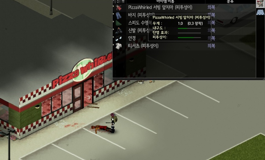 치료를 끝내고 주유소에가니 좀비 0.. 역시 공터쪽을 쓸어버린 효과가 있네. 아직 좀비가 바글바글하더라..; 저길 다 잡아야 될지 아니면 주유소 근방만 잡아야 될지 좀 고민이긴 한데... 며칠을 더 놔뒀다가 다시 시작해볼까 싶기도 하고..
