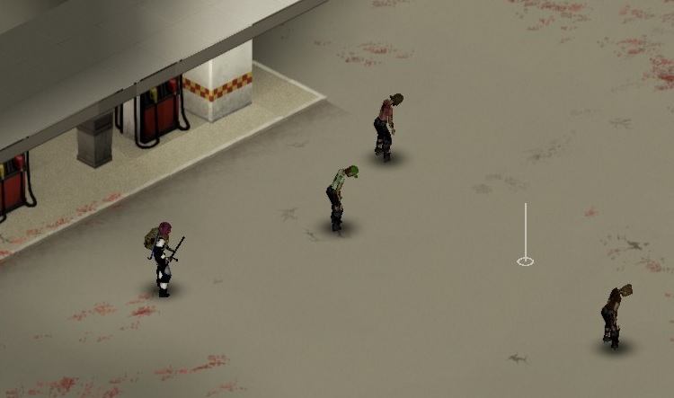 결국 주유소로 진입하게 되었다. 좀 이상한건 주유소의 주유기쪽엔 좀비가 별로 없다. 다만 뒤쪽에 좀 모여 있다는게 문제. 주유소 창문이 다 박살나버려서 안에 들어거서 움직이면 뒤에 있는 애들이 쫄쫄 따라온다. 그러니 결국 다 잡아야 된다는 것..;