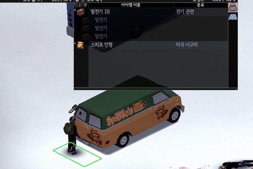 원래 트렁크 용량이 150 정도였는데, 가는 길에 좀비 피하느라 여기저기 좀 박았더니만, 122로 줄었다. 그래서 결국 3대 밖에 못 가져왔다.