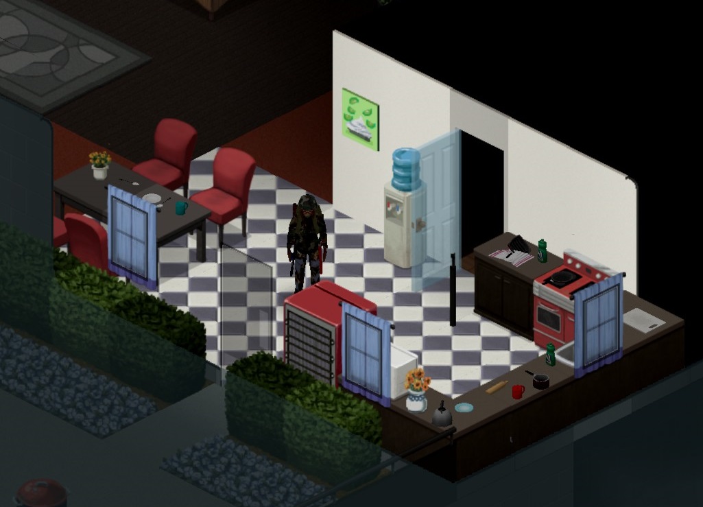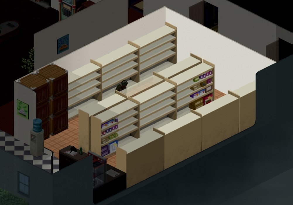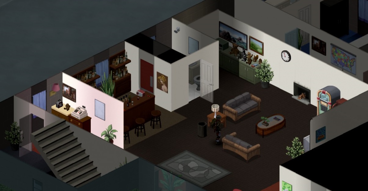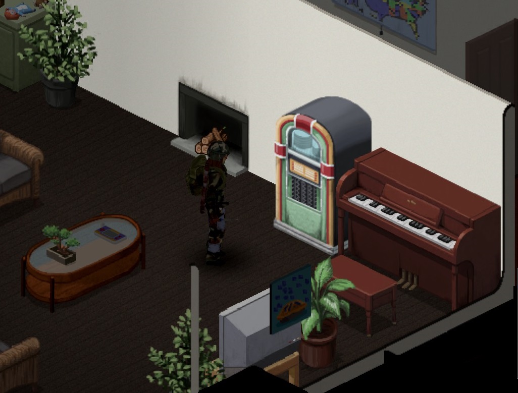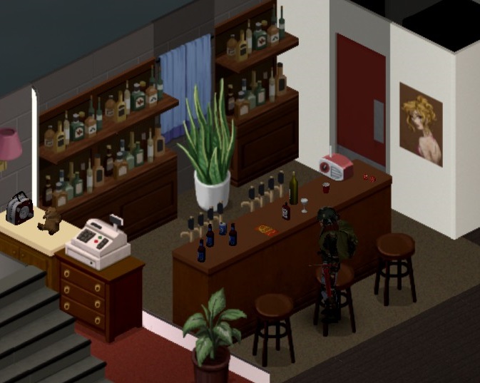 왼쪽 바를 만들었고 그 옆에 화장실, 그리고 자그마한 공간을 만들어 전시겸 무전기, 그리고 벽난로(more builds 모드) 주크박스, 피아노, 텔레비젼을 설치했다.