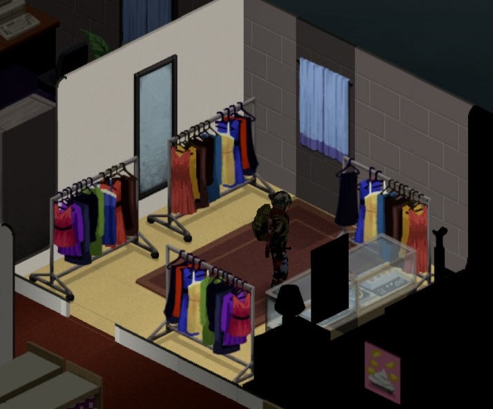 여긴 드레스룸이다. 좀비에게 당하다보면 옷이 구멍이 나는데 좀비들이야 워낙 많고 옷도 잘 주다보니 구멍나면 버리고 갈아입기도 하고 여분의 옷도 가져와서 여기에 따로 저장도 해 놓는다. 발로 밟기를 자주 하다보니 부츠나 군용부츠도 잘 손상되서 몇개 저장 중.. 그리고 하와이언 셔츠나 이런 좀 특이해 보이는 옷들도 가져와서 걸어 놓는다. 비오는날이면 피 묻은 옷들을 씻는다. 그리고 귀금속도 따로 모아 아래 진열장에 넣어둔다.. ㅋㅋ(망한 세상에 왠 보석...)