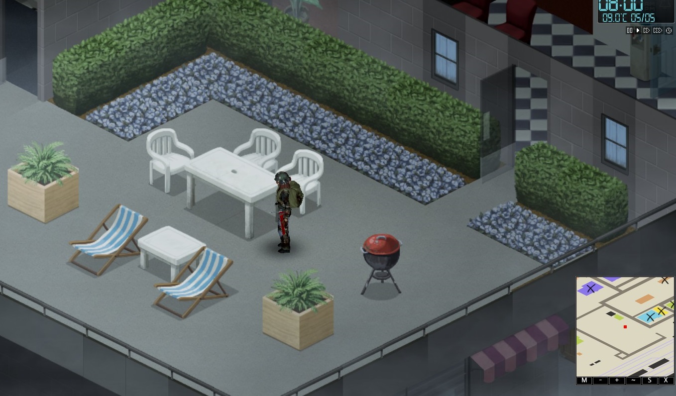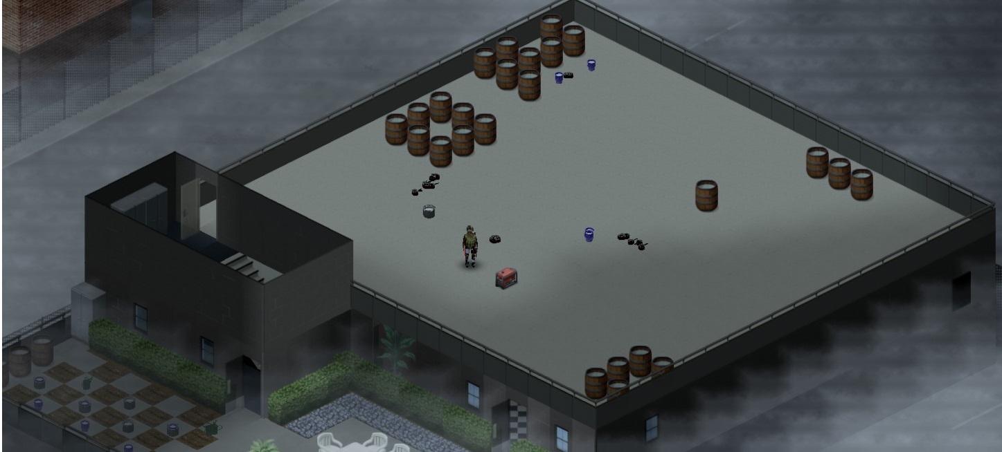 마지막으로 여기는 옥상. 왼쪽편 계단 철재 보관함에 발전기용 기름이 있고, 발전기는 중앙에서 약간 아래에 있다. 차고 있는 자동차 배터리 충전을 위해 밑으로 좀 내렸다. 차고가 아니더라도 입구 근처에 주차하면 배터리가 차더라.