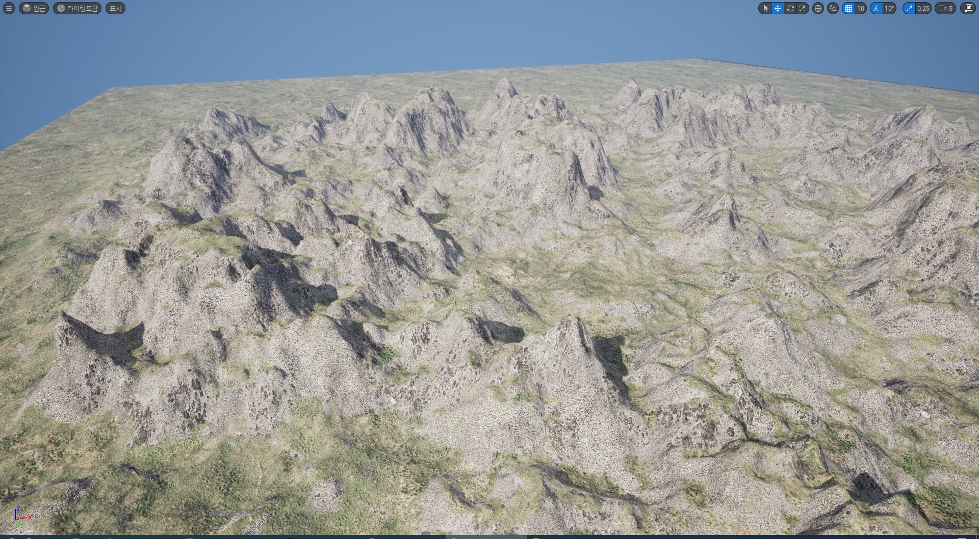 위 사진은 대충 만든 지형인데, 엔진 자체에 있는데 TillingNoise05라는 노이즈 텍스쳐로 몇번의 조정만으로 만든건다.