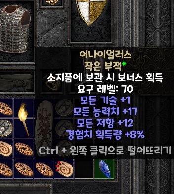 가변 수치가 능력치랑 저항은 10~20, 경험치는 5~10사이니.. 뭐.. 중박 겨우 쳤다고나 할까... 경험치 획득량 8%가 왜 이리 반갑지..ㅋㅋ 이제 40%좀 넘게 채웠는데 래더 전에 얼릉 렙업이나 해야겠다.