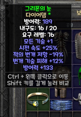 번개 저항은 1빠지고, 번개 피해는 3이나 빠지는.. 그냥 중급 정도의 그리폰의 눈이다.