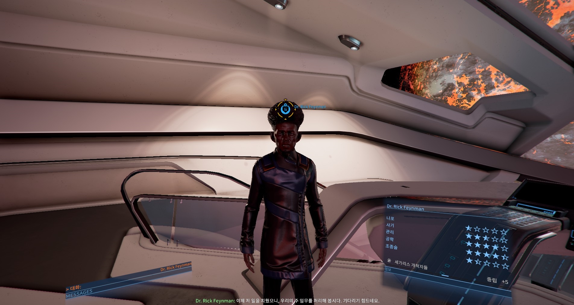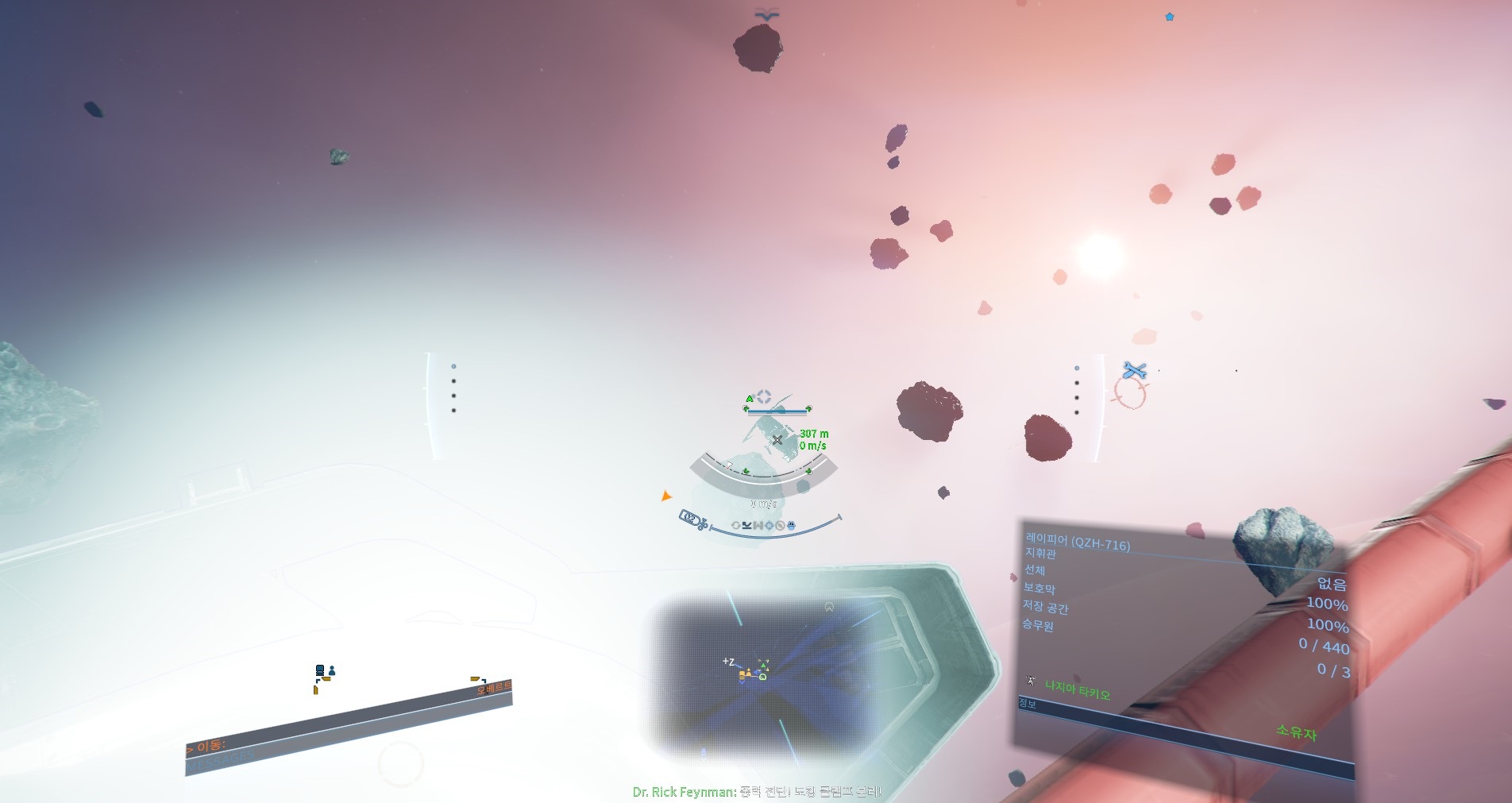 간만에 해보는 수동 도킹을 끝내고 파인만에게 가서 연산 장치를 건네준다.
