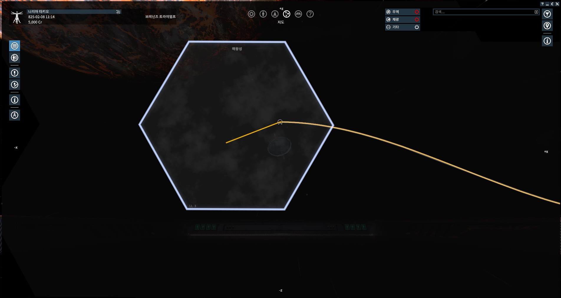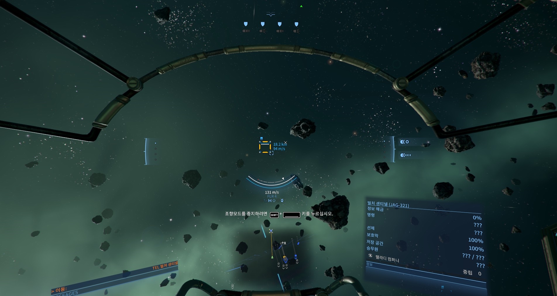 도킹 컴퓨터 Mk2가 설치되어 있지 않다보니 도킹 할때 수동으로 해야 된다. 함장을 영입할려고 해도 처음 쥐어주는 돈이 꼴랑 5000cr이니..
