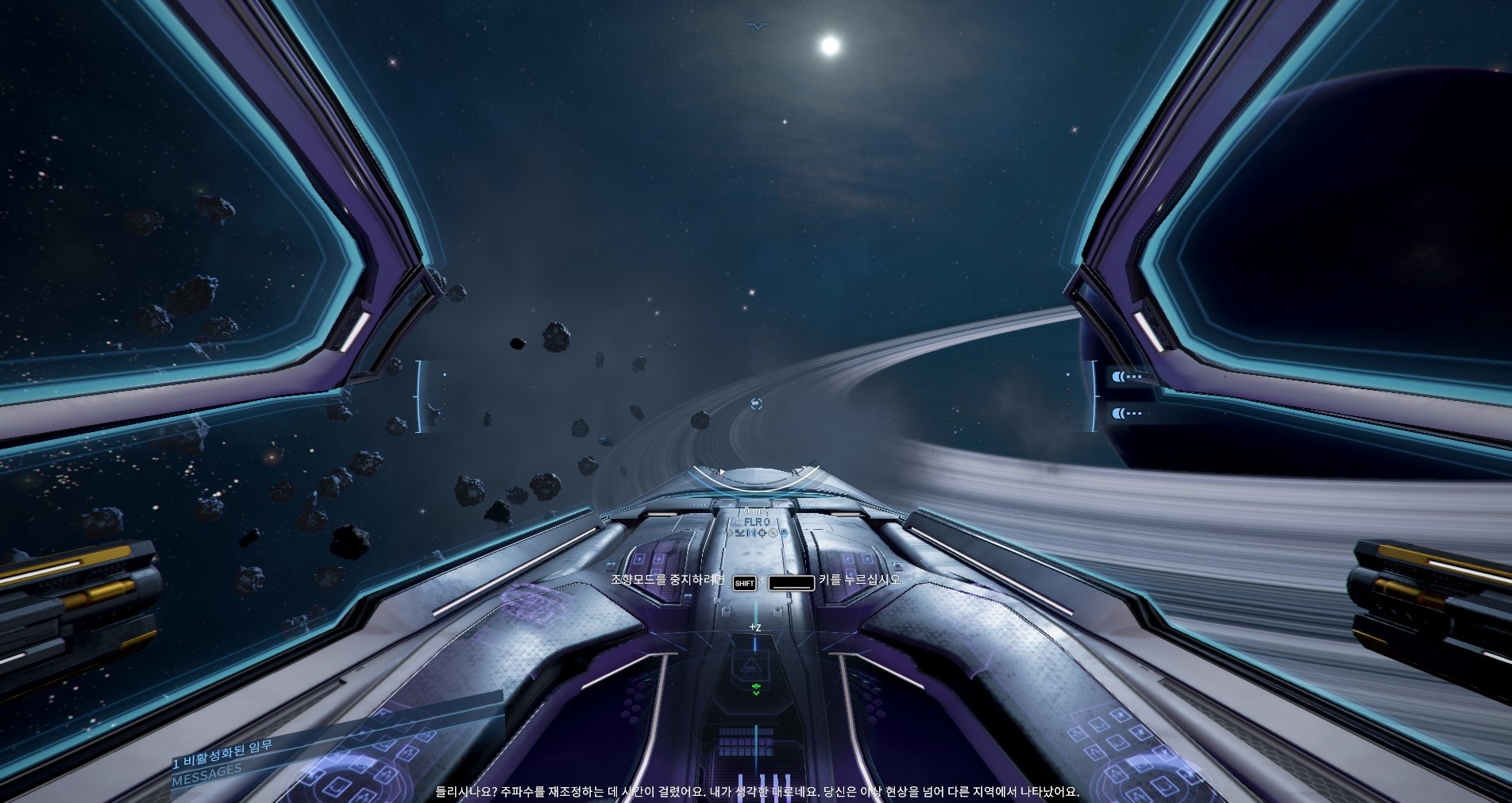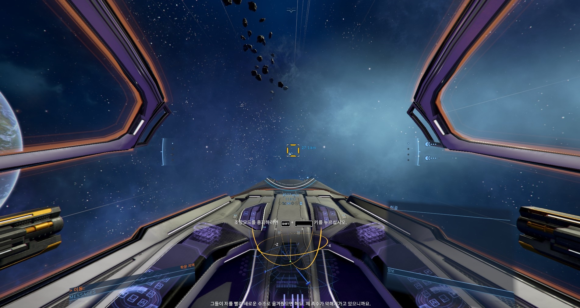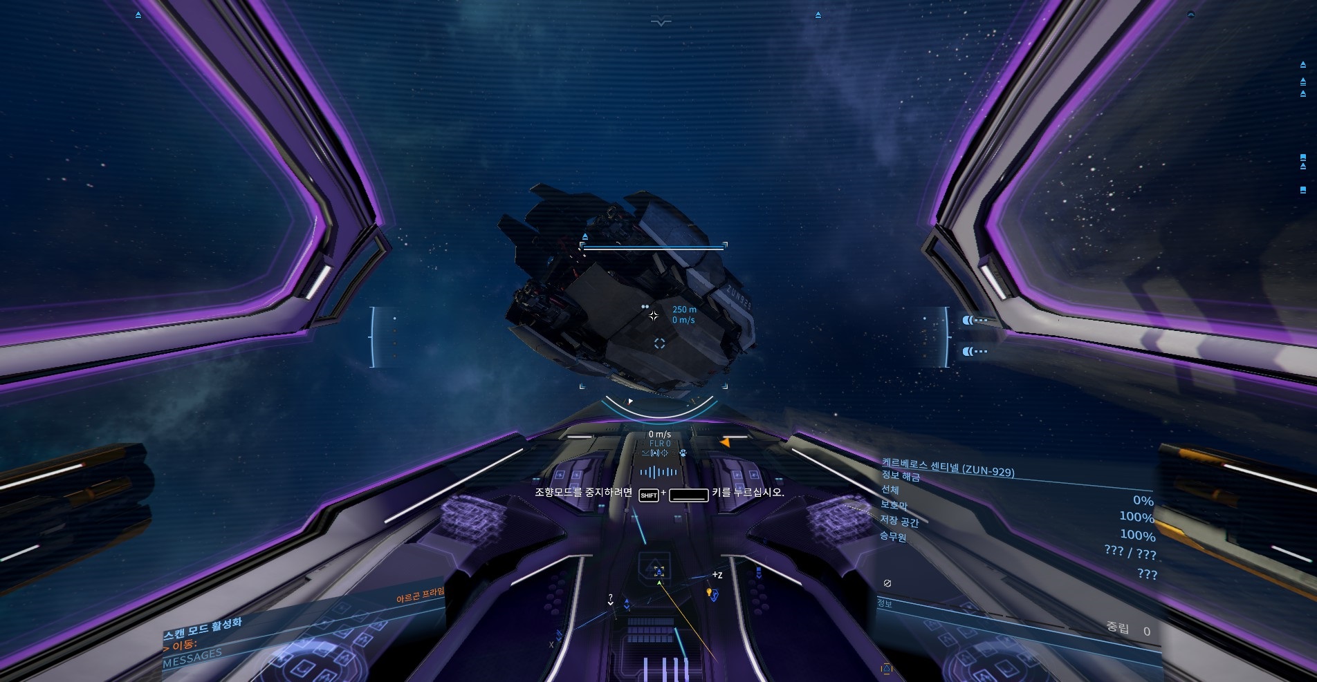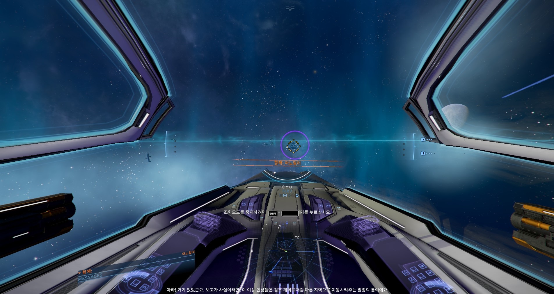 이제 출항을 합니다. 그러면 해당 성계에서 어디로 가라고 표시가 뜹니다. 도착하면 장거리 스캔(Shift+3)을 하라고 합니다.