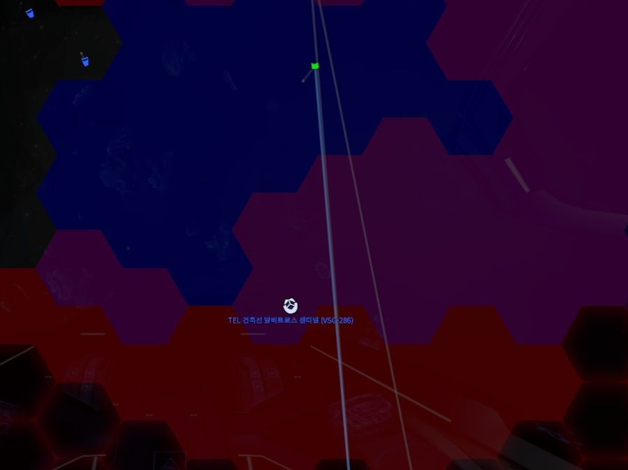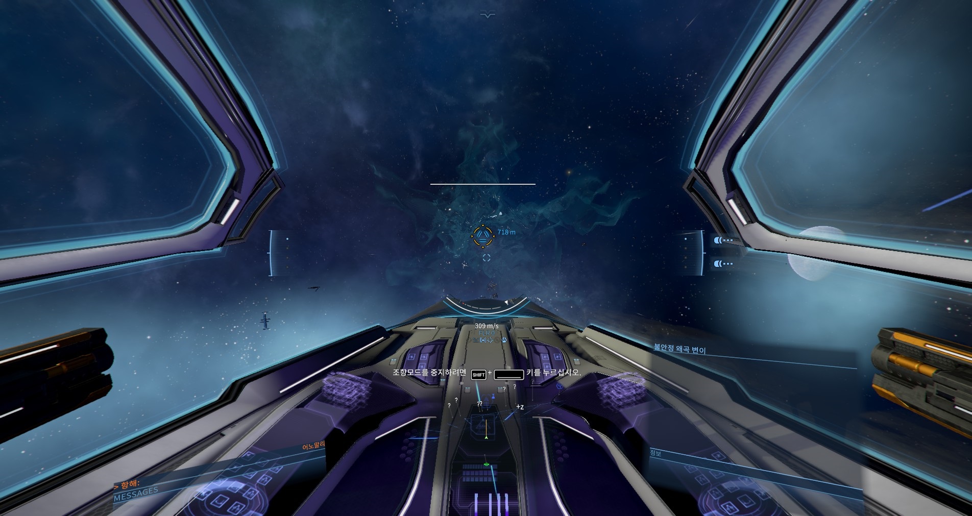 가까이 다가가면 이렇게 '불안전 왜곡 변이'가 보입니다. 일종의 랜덤 포탈로 섹터에 하나씩은 존재합니다. 플롯 미션 중에는 1회 한정 그랜드 익스체인지 I로 이동하게 되며 이후에는 랜덤 섹터로 이동하게 됩니다. 항법 비컨을 설치하고 들어갑니다.