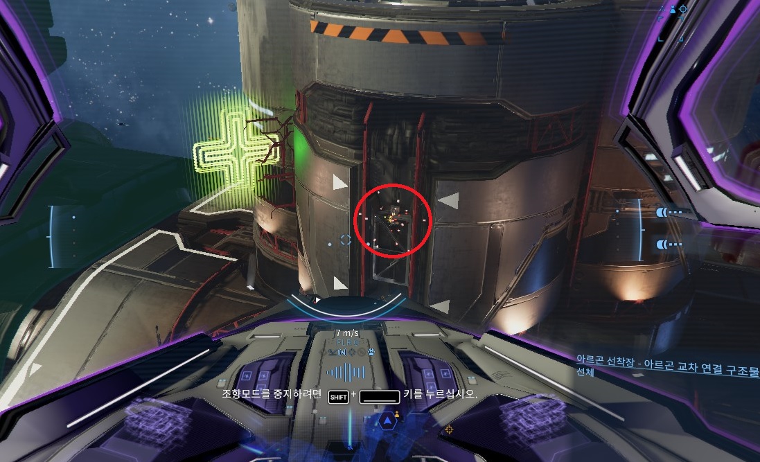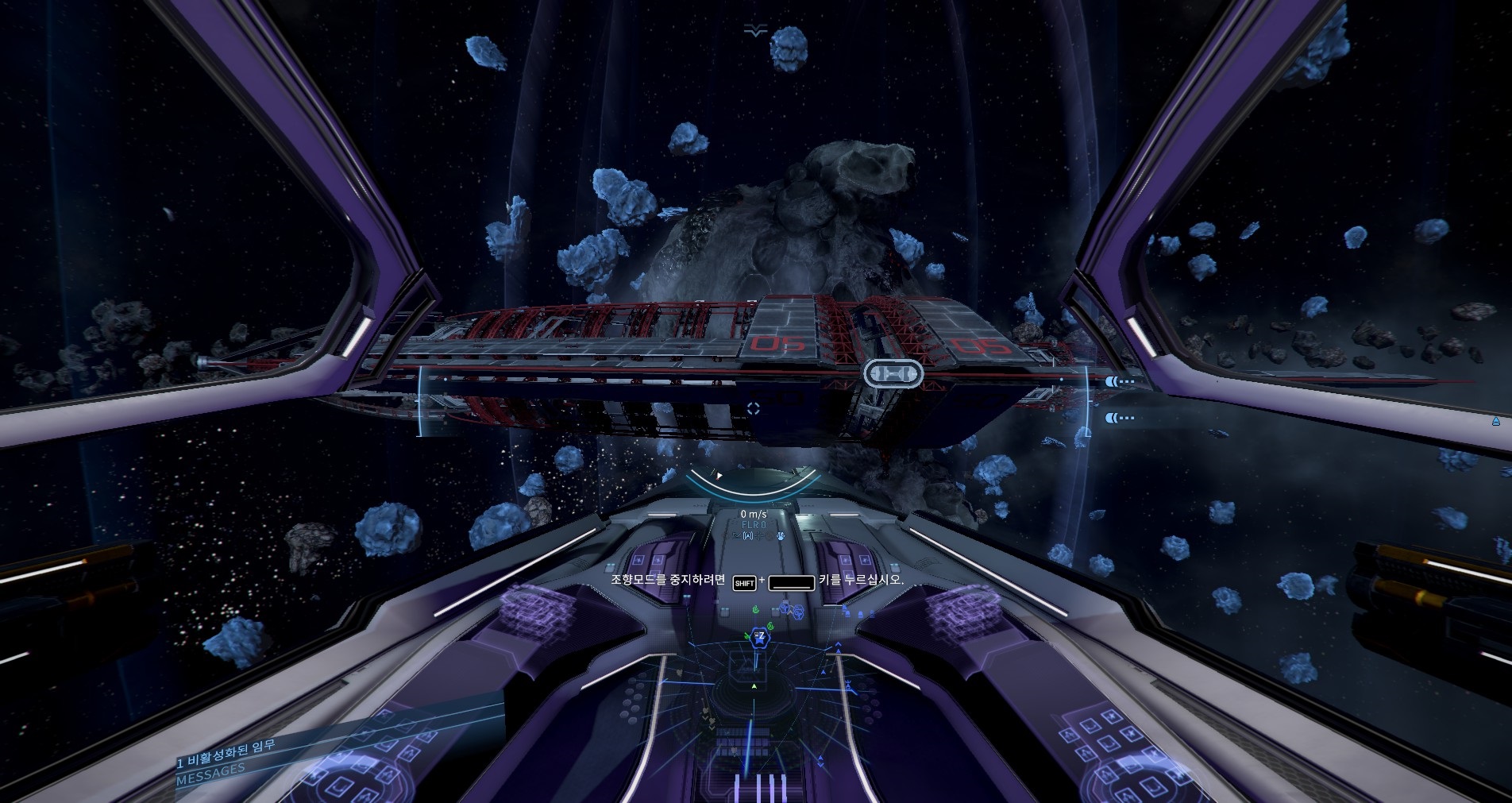 알려준 위치로 가면 M급 함선 케르베르스 뱅가드가 있습니다. 데이터 누출 찾아서(함선 뒤쪽 엔진 중앙 부분) 분석하면 소유를 하게 됩니다. 이제 전투를 해야 하니 이 함선을 조종합니다. S급 도킹 베이가 있으니 타고온 함선은 도킹 시켜주세요.