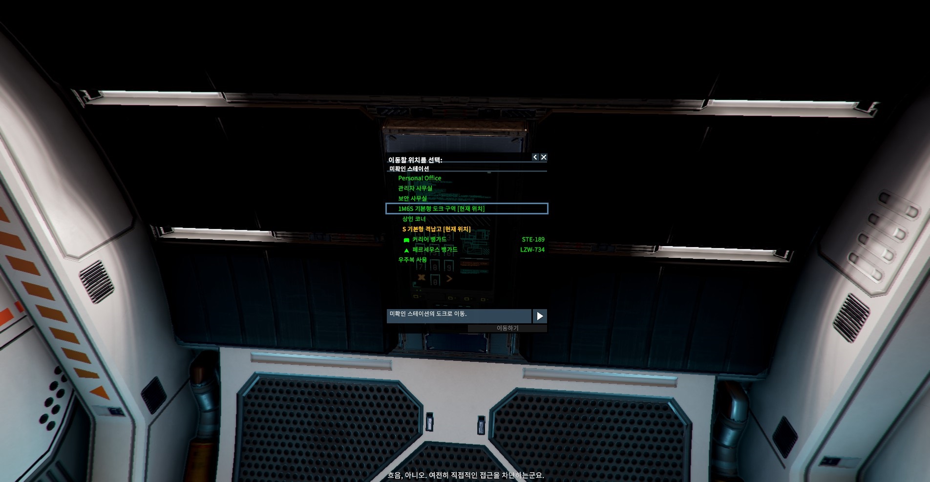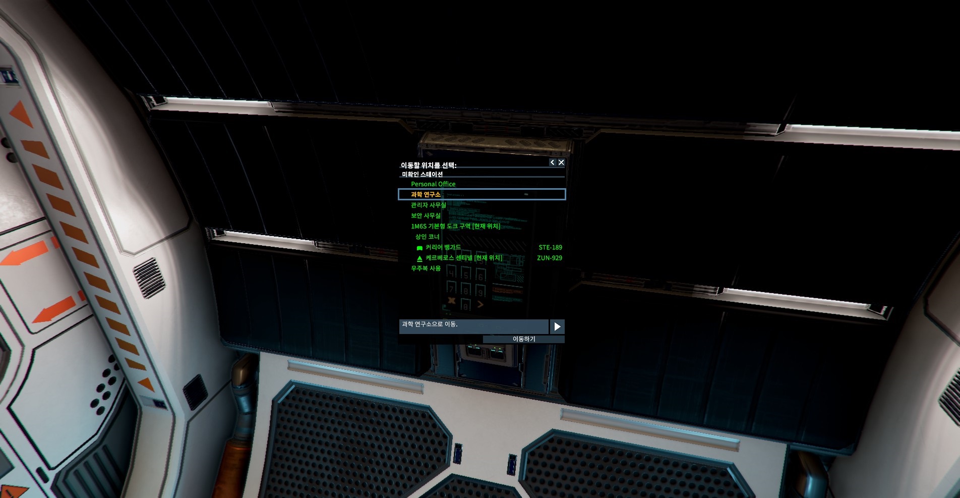 도크가 완성되면 도킹 하라고 합니다. 도킹 해서 엘리베이터 쪽에 가면 다른 곳은 진입이 가능하지만 '과학 연구소'에는 들어가지 못합니다. 이에 보소 타가 직접 찾아간다고, 즉 탈출 하겠다고 하면서 좌표를 알려줍니다.