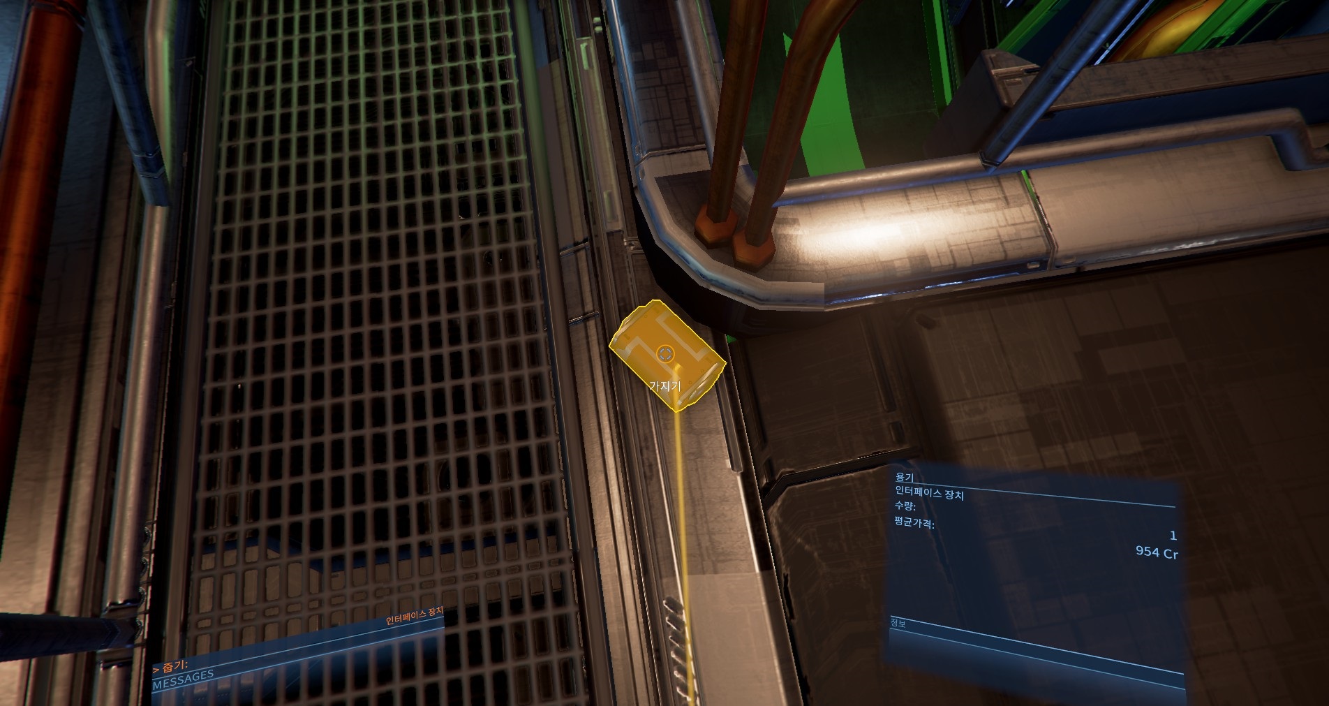 퀘스트를 시작하는 스테이션에 도킹을 하고 노란선을 따라가면 '인터페이스 장치'가 있습니다. 이걸 챙깁니다.