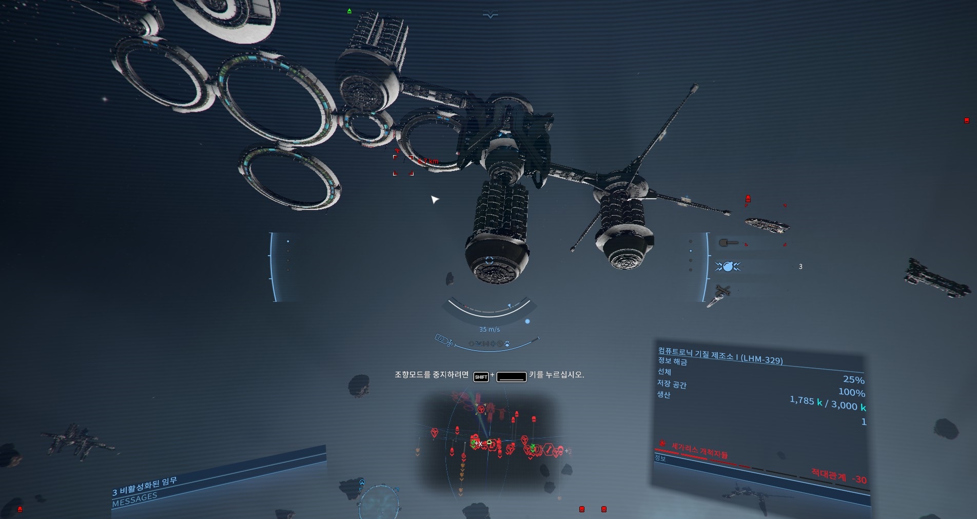 그래서 우주복으로 갈아입고, 즉 함선 밖에 나가서 가까이 가니..; 일단 건물쪽 방어 드론이나 터렛은 공격을 하지 않는다. 다만 지나가는 다른 적군 함대는 공격을 해 온다. 즉... 길목에서 한다면 곧 적함에 들켜 공격 받을 수 있으니 외진 곳을 찾아 작업 하는게 좋다는 것. 하지만 순찰을 수시로 돌기 때문에 타이밍 잘 맞춰야 한다.