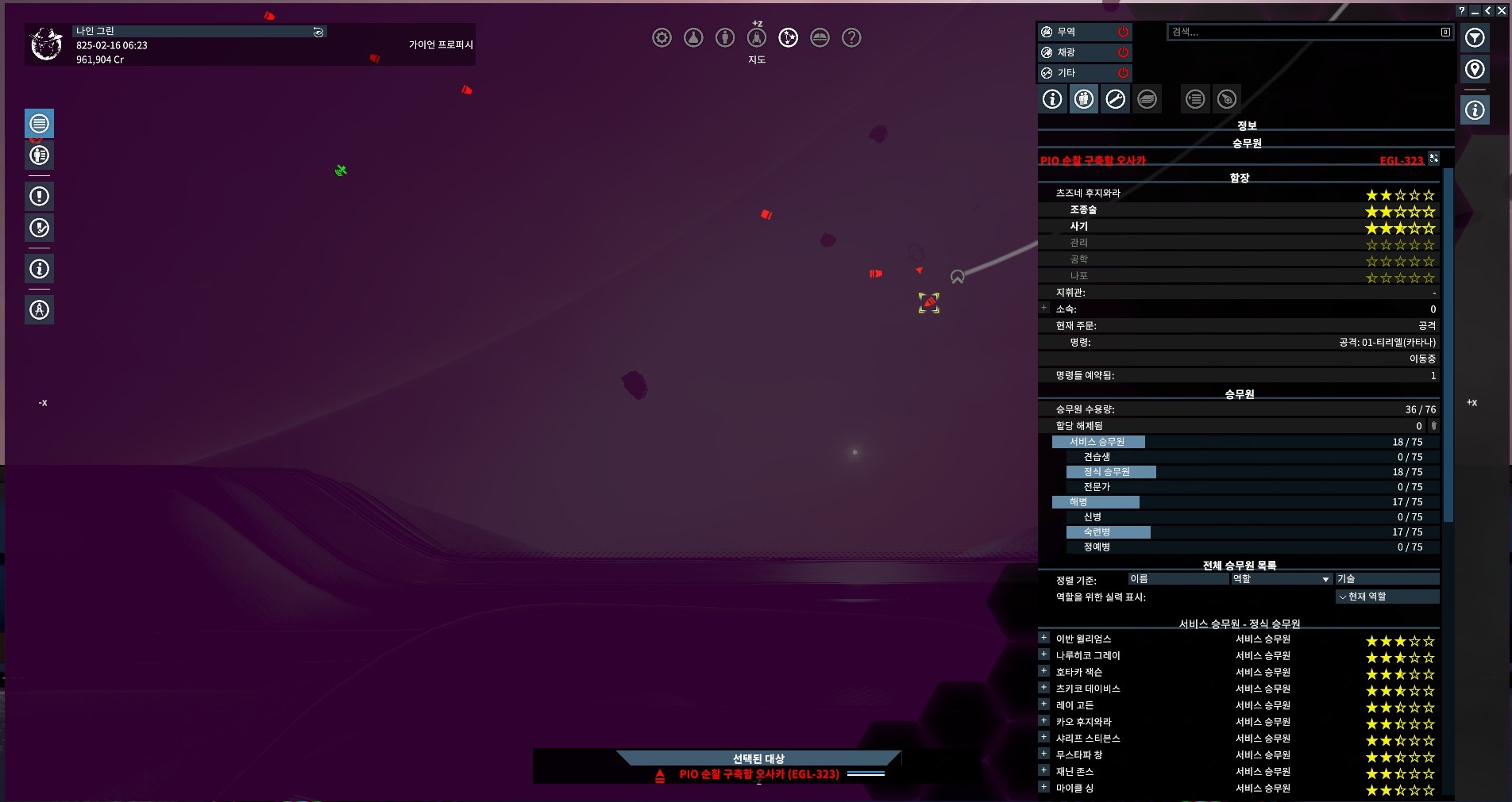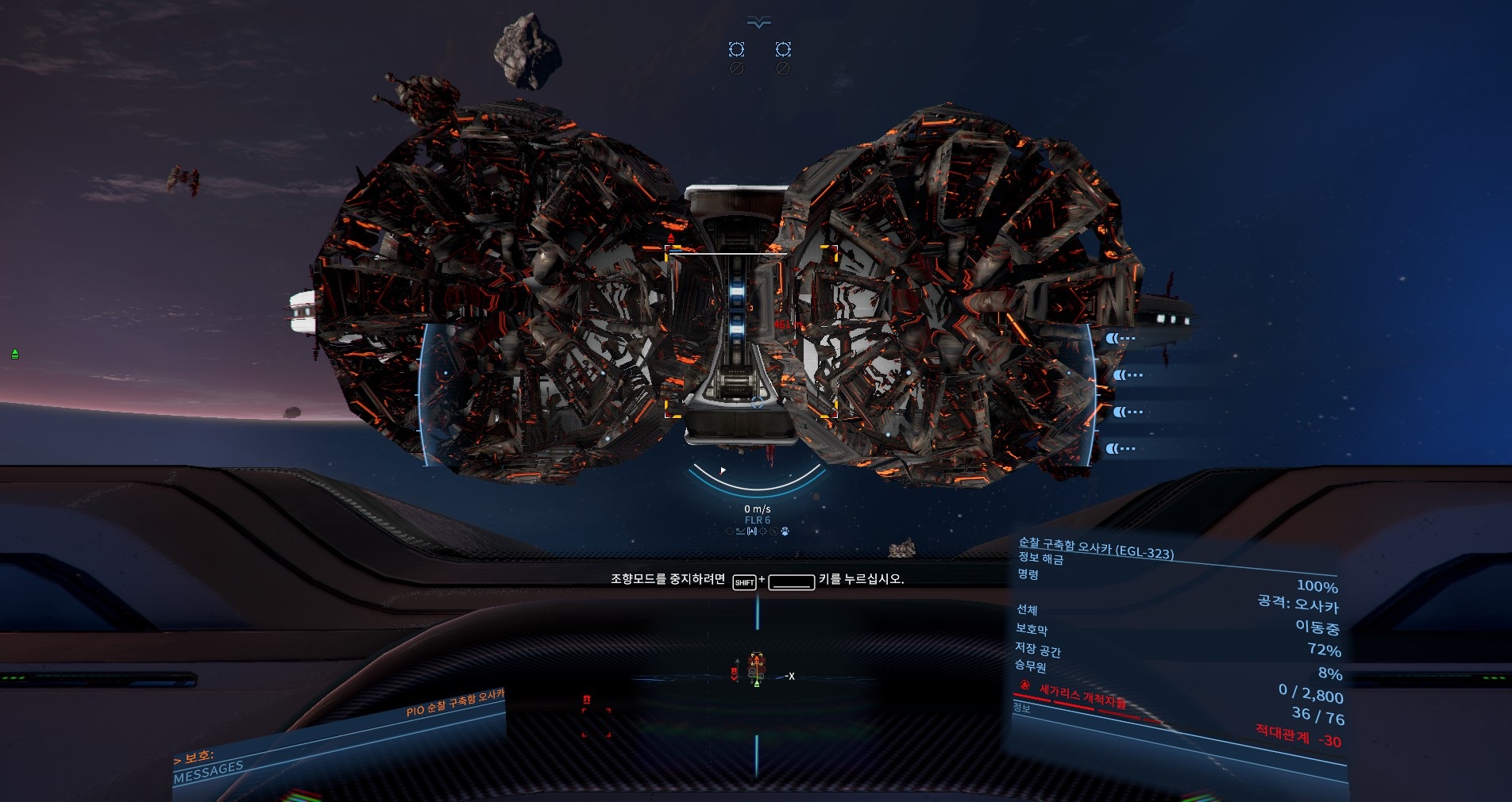 세가리스에서 카타나 훔칠려고 알짱거리고 있을때 구축함1,M급 2, S급 12대를 보유한 편대가 외곽을 순찰 중이었다. 헌데, 그렇게 호전적이진 않았다. 먼저 선공은 안 하고 주변에 다른 애들을 치면 그제서야 반응 하는 정도였다.