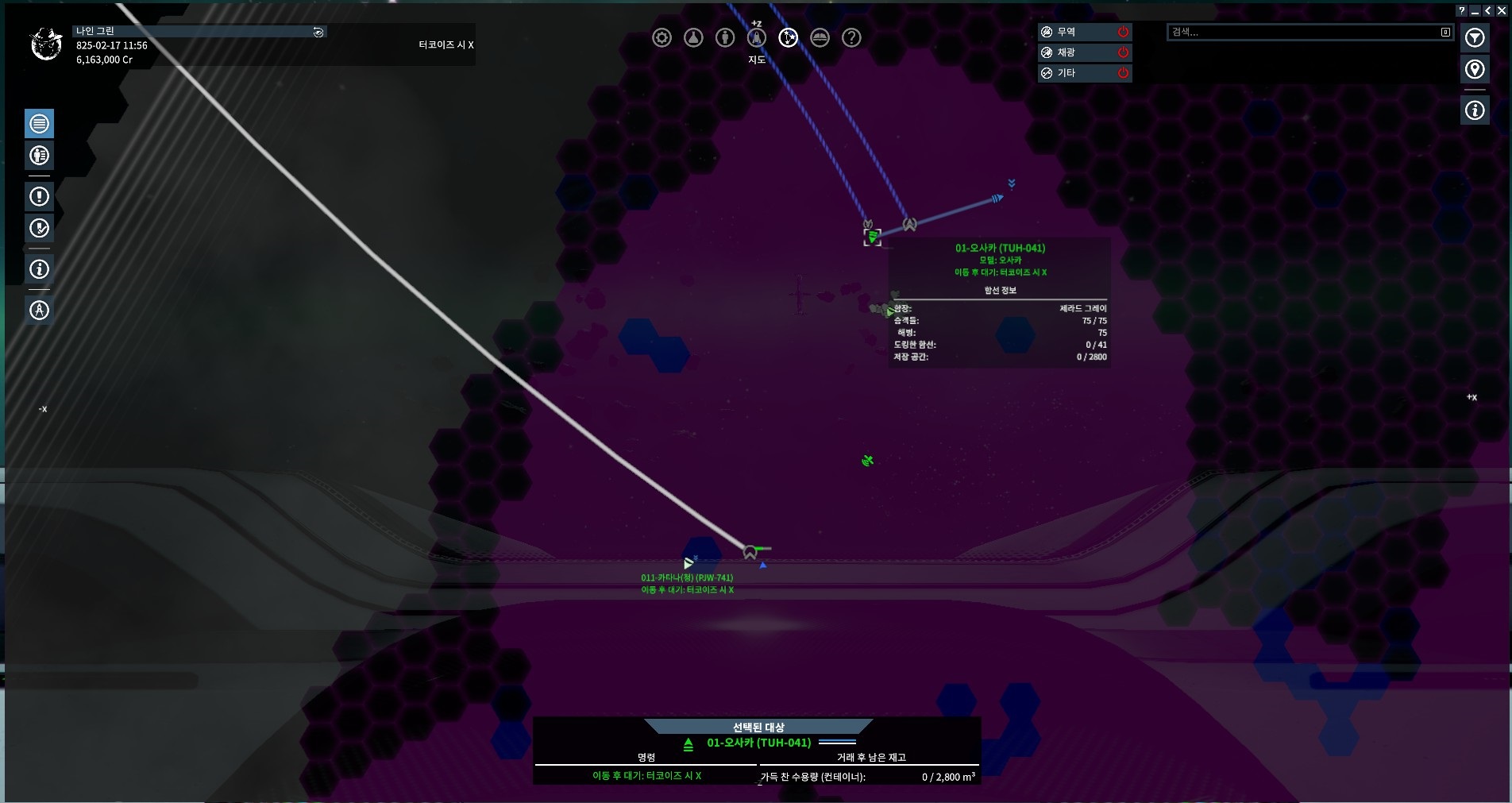 보통의 경우 구축함 2~4대와 S,M급 몇대, 보급선이 딸린 편대를 보내서 순찰을 보낸다. 가스를 채광하면서 전투기도 몇대 잡고, 구축함도 몇대 뺏어서 그런가 요즘들어 경비가 삼엄해졌다. 보급선 딸린 편대 외에도 다른 편대가 돌아다니는게 보이는 것이다.