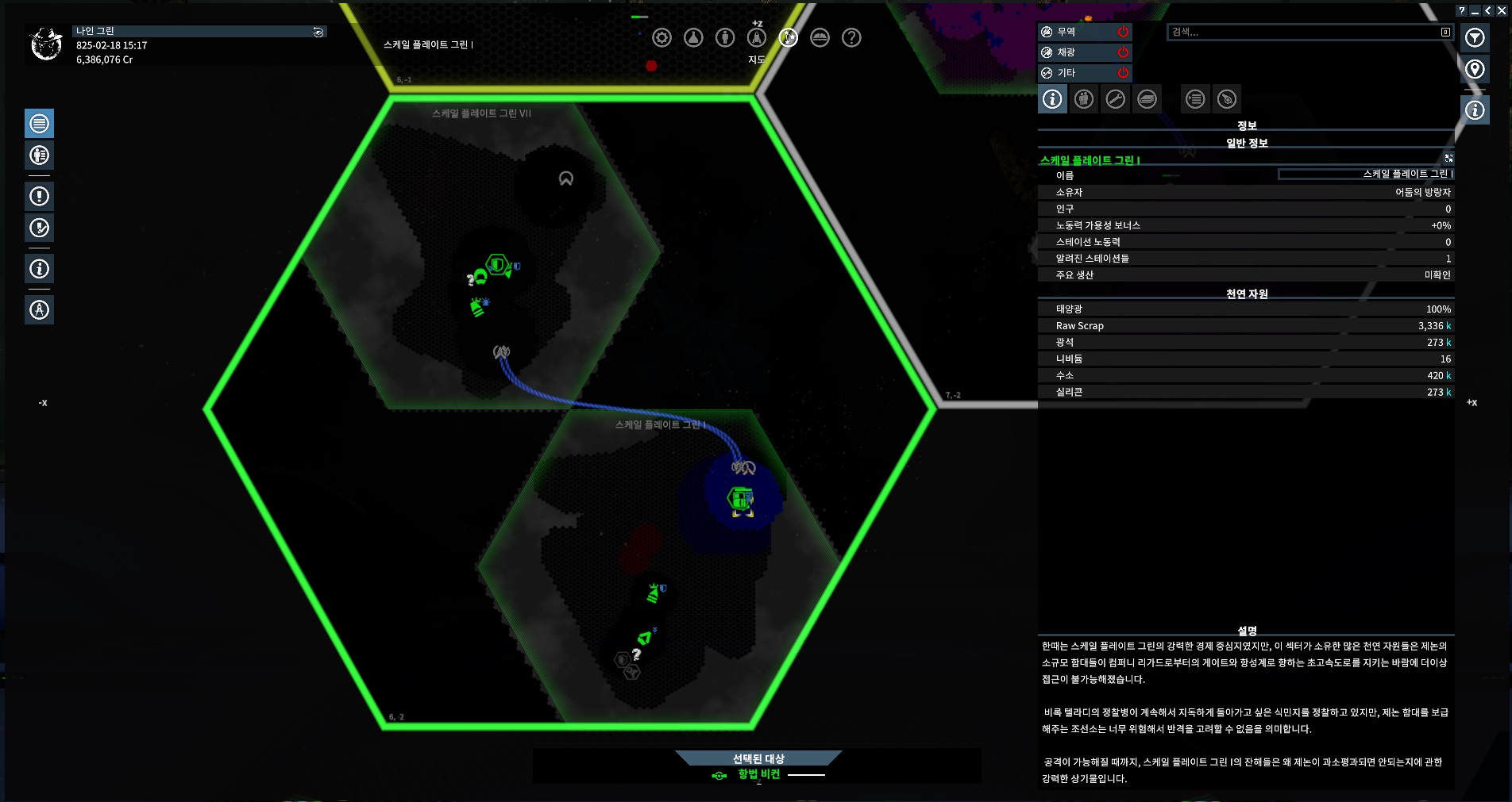 저길 점령해야... 텔라디와의 구격이 한개로 줄어들게 되니깐.. 지금은 두 곳을 동시 방어해야 되는데 그만한 함대가 안 나온다.. 일단은 컴퍼니 리가드 쪽의 구축함을 좀 뺏어와서 터고이즈 시 X 쪽에 방어를 준비해야겠다.