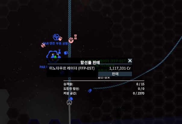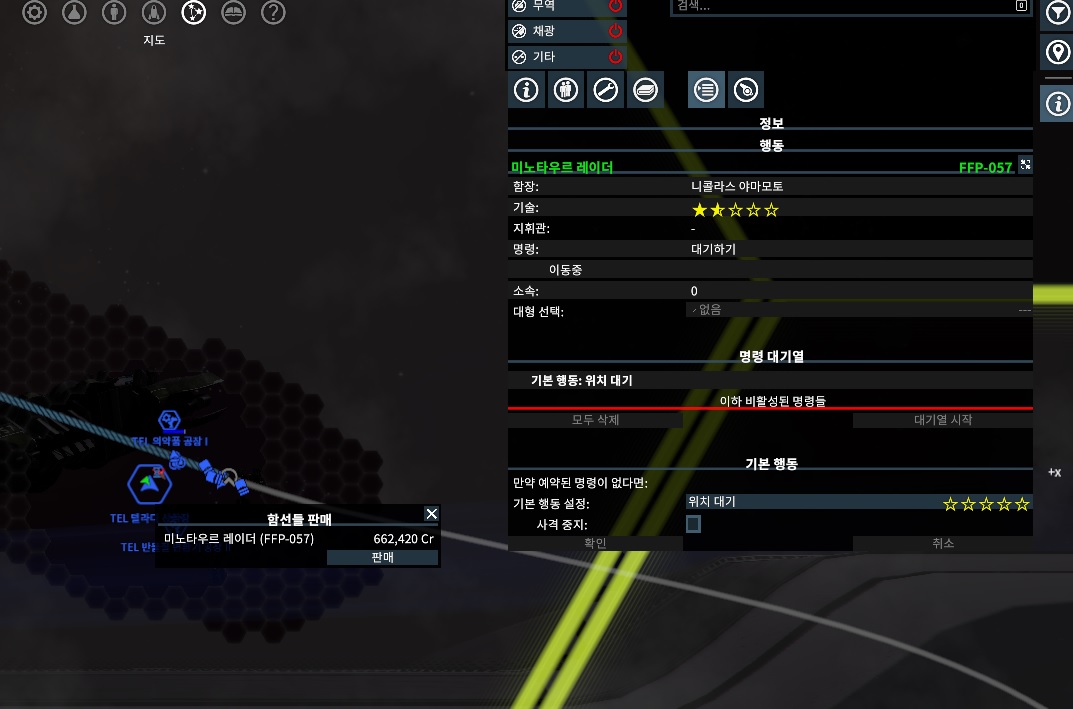 임시로 함장을 임명하고 근처에 선착장으로 보내자. '업그레이드/수리'를 통해서 소모품을 다 팔고(선착장에 따라 다르다, 이 경우 어떤 선착장에서는 40만cr 이득을 보는 곳도 있었다) 수리비까지 청구했는데도 70만cr을 더 이득을 본다. 선착장이나 정비소에서 최종적으로 가격이 - 가 된다는 소리는 내가 돈을 더 받는다는 의미다. 소모품만 팔았을 뿐인데, 함선을 그냥 팔때보다 더 큰 이득을 보고 말았다.. 응?!